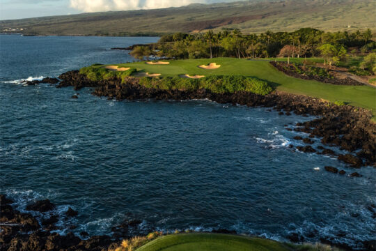 Improvements and enhancements to the Mauna Kea Golf Course (driven by the vision of Robert Trent Jones Jr.) are now complete. During the process, attention was paid to the famous third hole, a par-3 that plays across crashing ocean waves. Not to disturb the original look, old pictures were studied. Only minor changes were made to the tee boxes and green; three bunkers were modified.