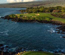 Improvements and enhancements to the Mauna Kea Golf Course (driven by the vision of Robert Trent Jones Jr.) are now complete. During the process, attention was paid to the famous third hole, a par-3 that plays across crashing ocean waves. Not to disturb the original look, old pictures were studied. Only minor changes were made to the tee boxes and green; three bunkers were modified.